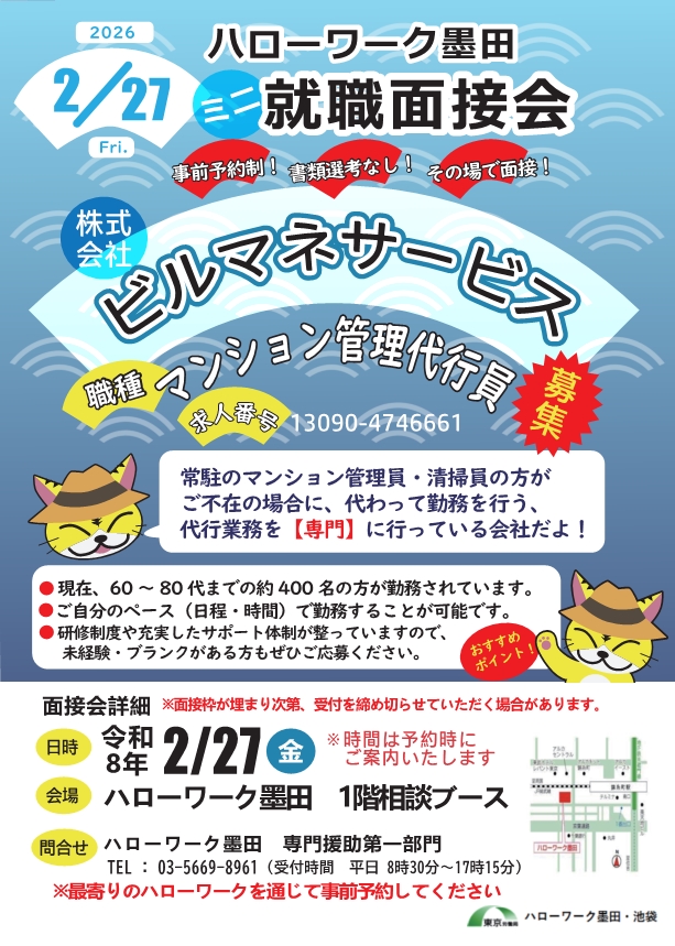 【2月27日】株式会社ビルマネサービス ミニ就職面接会