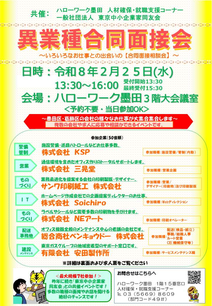 【令和8年2月25日開催】異業種合同面接会開催のお知らせ