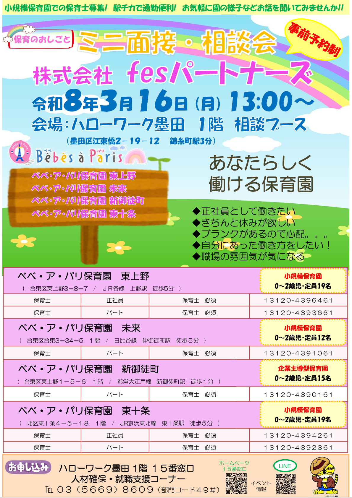 【3月16日】株式会社fesパートナーズ ミニ面接・相談会