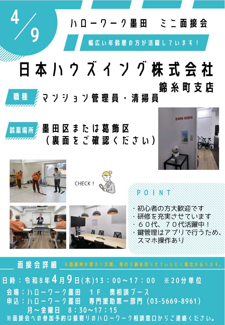 【4月9日】日本ハウズイング株式会社錦糸町支店 ミニ面接会