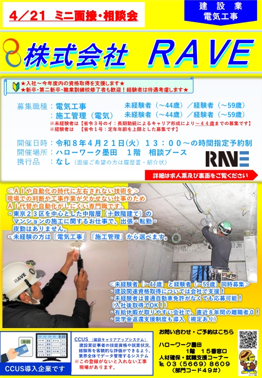 【4月21日】株式会社RAVE ミニ面接・相談会