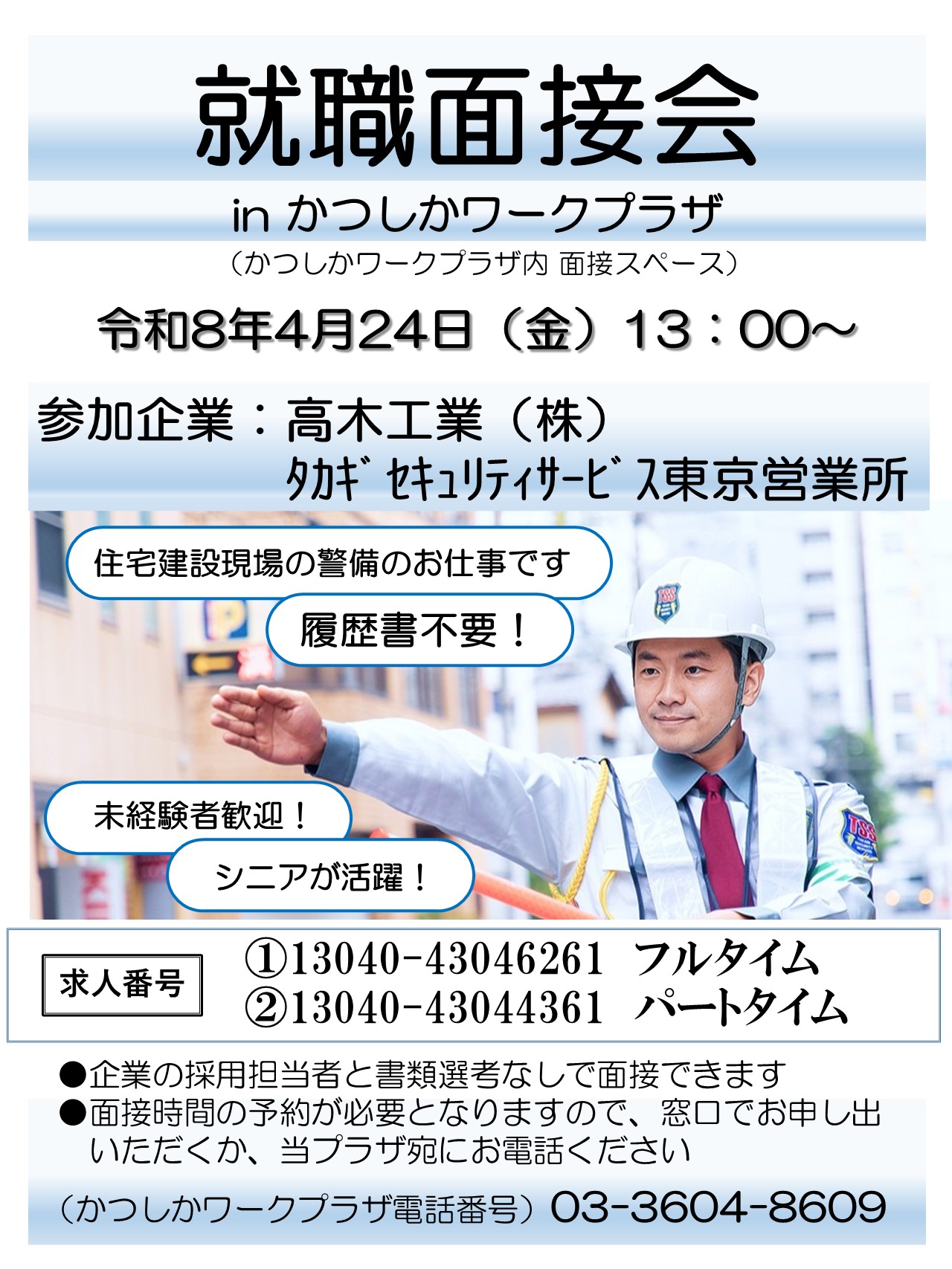 【4月24日】高木工業株式会タカギセキュリティサービス東京営業所 就職面接会