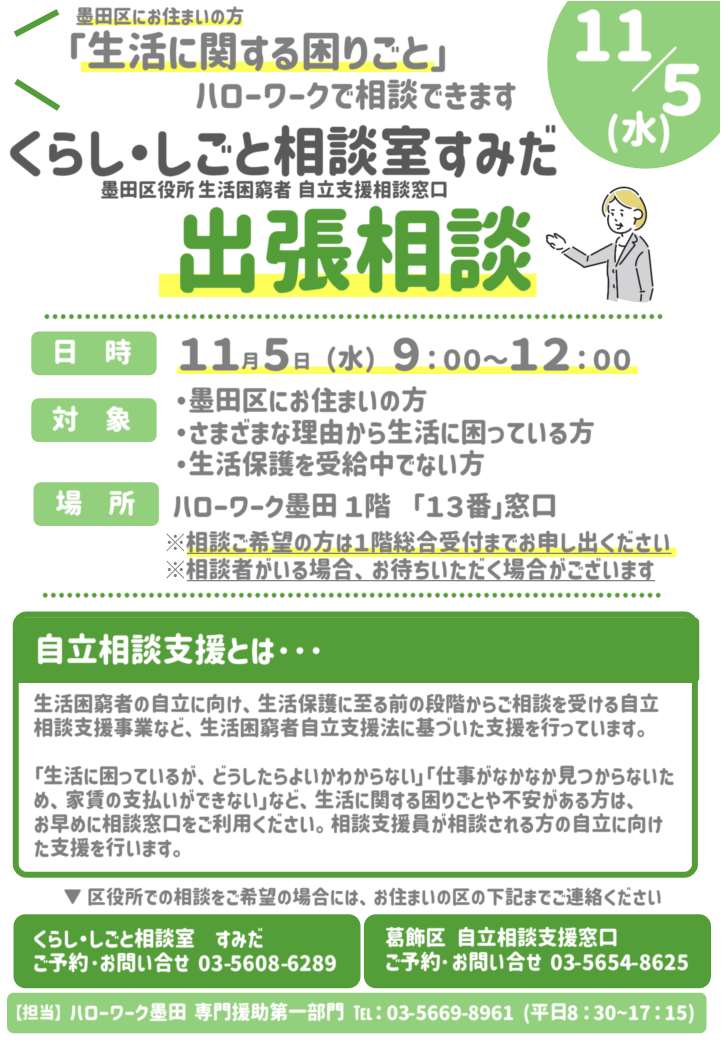 【11月5日】くらし・しごと相談室すみだ:出張相談