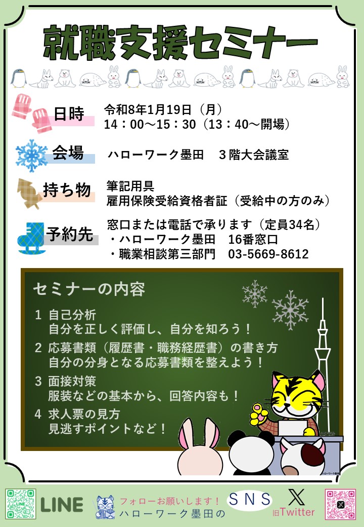 - ハローワーク墨田 3階大会議室 (墨田区江東橋2-19-12 JR総武線 錦糸町駅から徒歩3分)