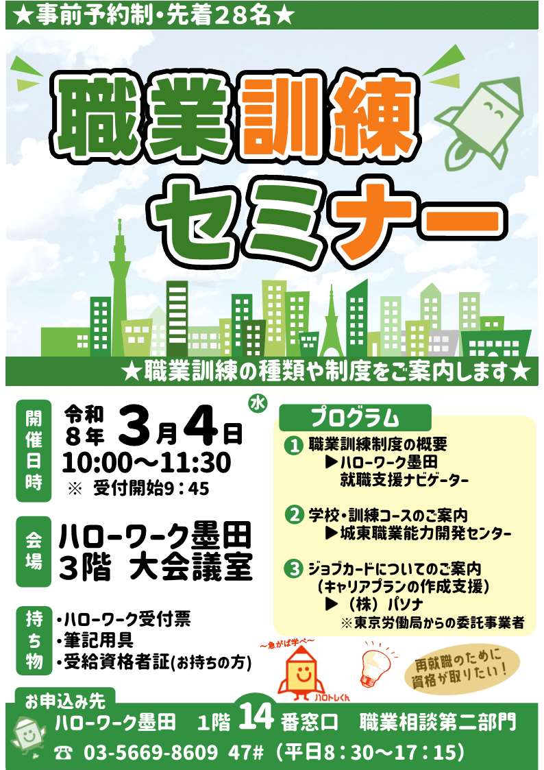 - ハローワーク墨田 3F大会議室 (墨田区江東橋2-19-12 JR総武線 錦糸町駅から徒歩3分)