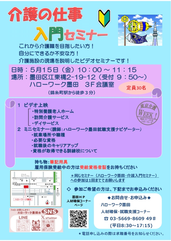 - ハローワーク墨田 3F会議室 (墨田区江東橋2-19-12 JR総武線 錦糸町駅から徒歩3分)