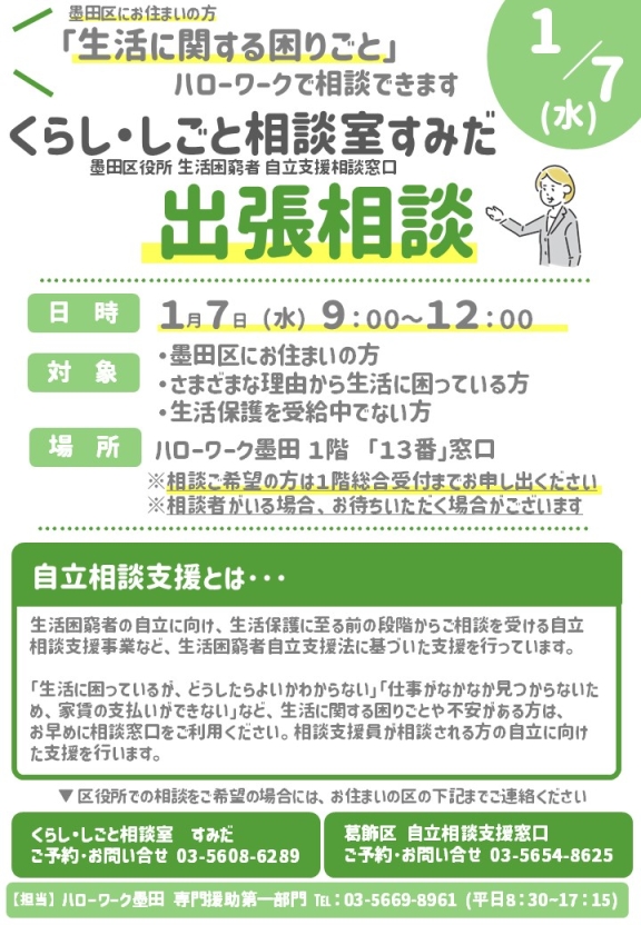 【1月7日(水)】くらし・しごと相談室すみだ:出張相談(ハローワーク墨田)