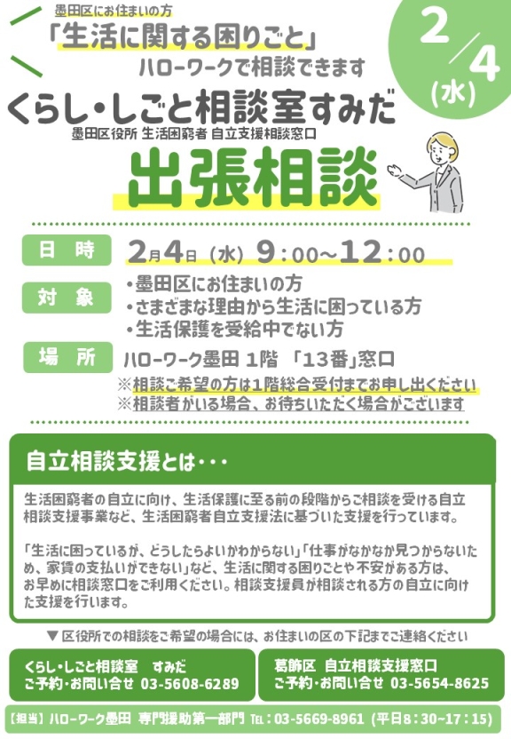 【2月4日(水)】くらし・しごと相談室すみだ:出張相談(ハローワーク墨田)