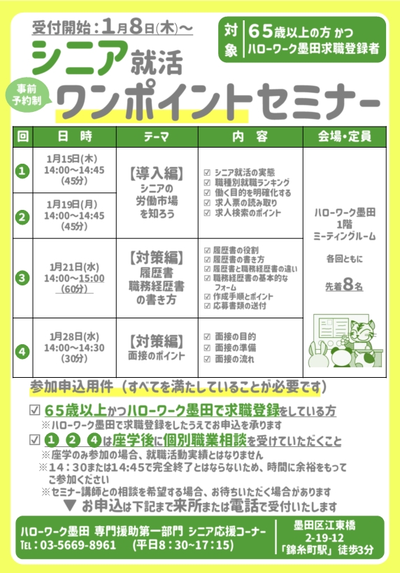 - 65歳以上の方かつハローワーク墨田求職登録者