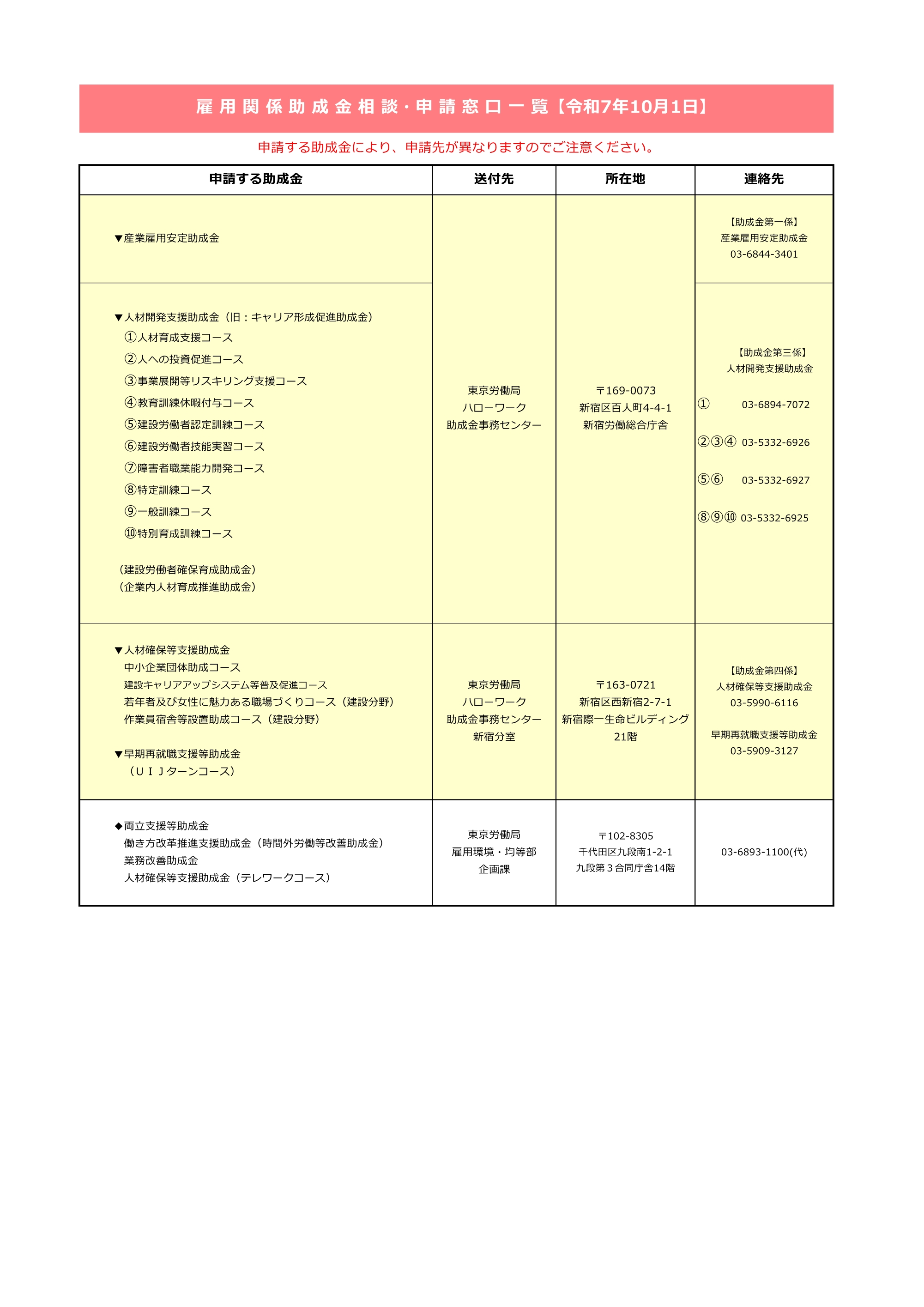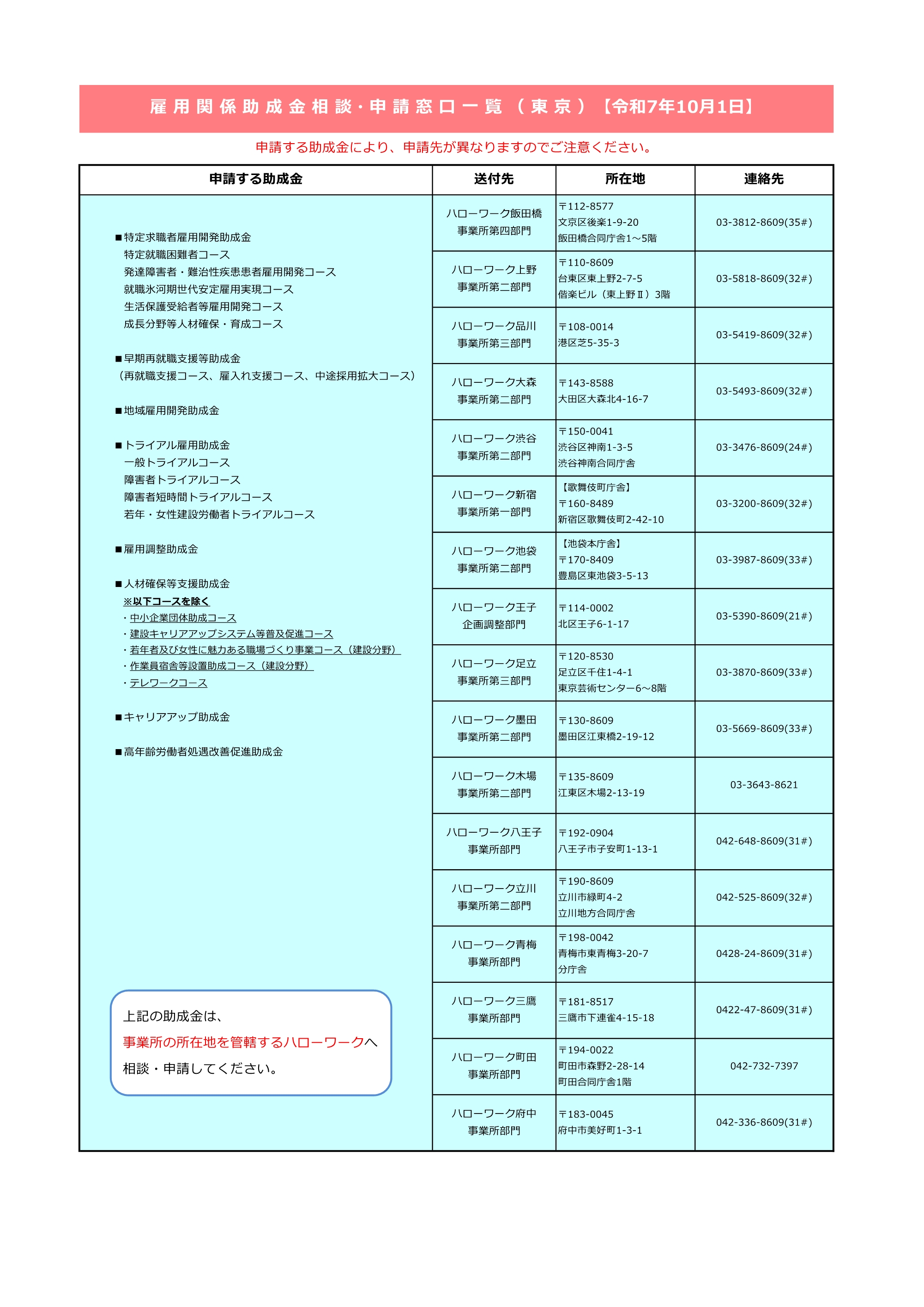 雇用関係助成金 相談・申請窓口一覧(PDF)