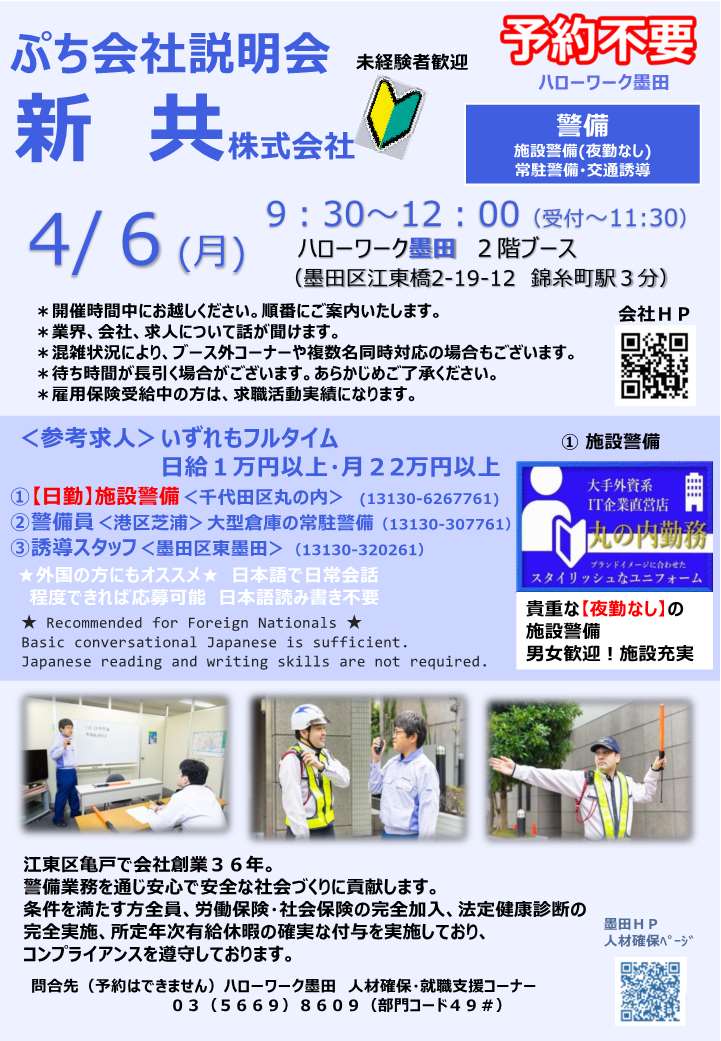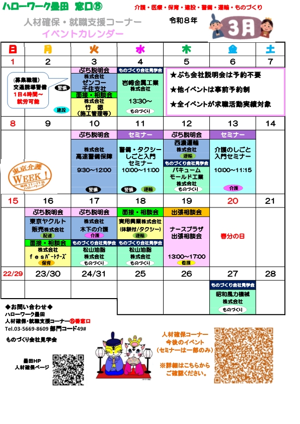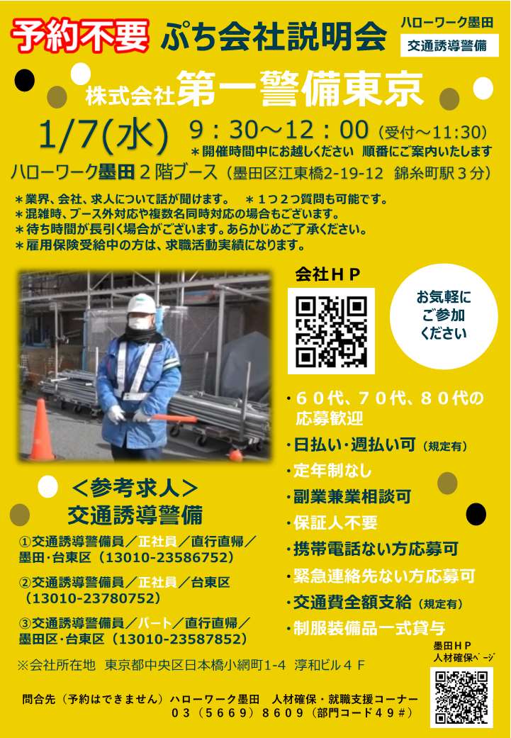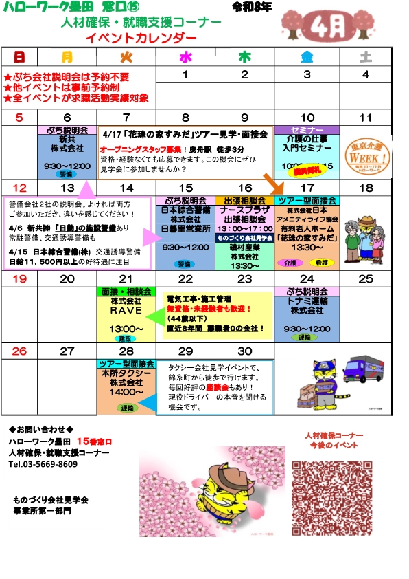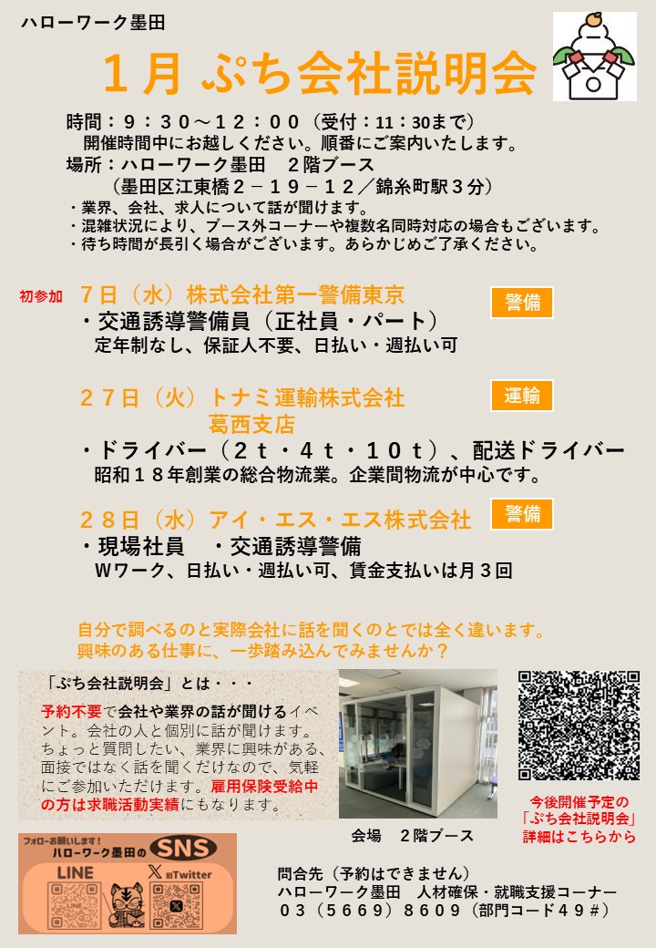 墨田所を含めて都内8ヶ所のハローワークにありますが、「ものづくり」支援は当所のみが対応しています。