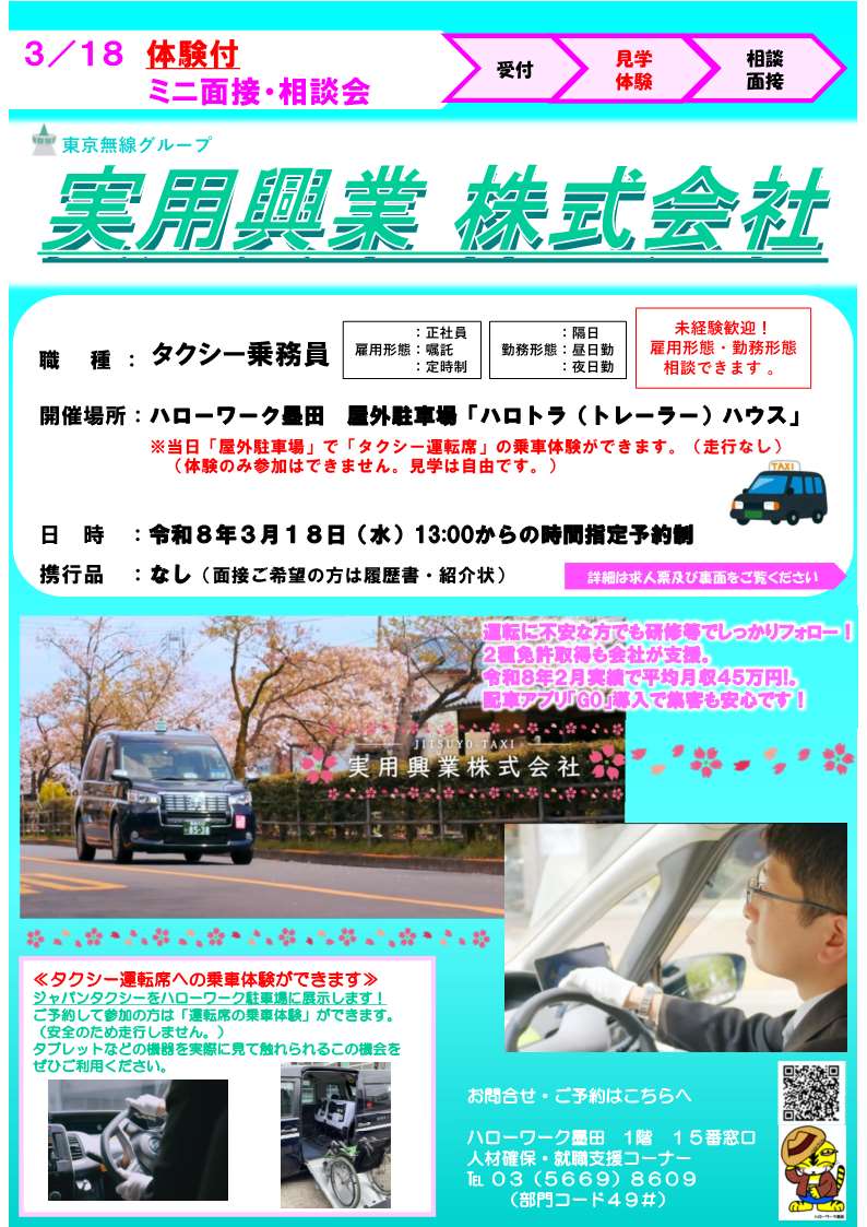 3月18日開催 体験付ミニ面接・相談会 実用興業株式会社