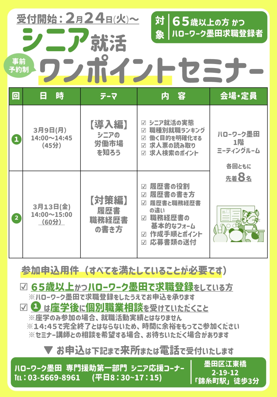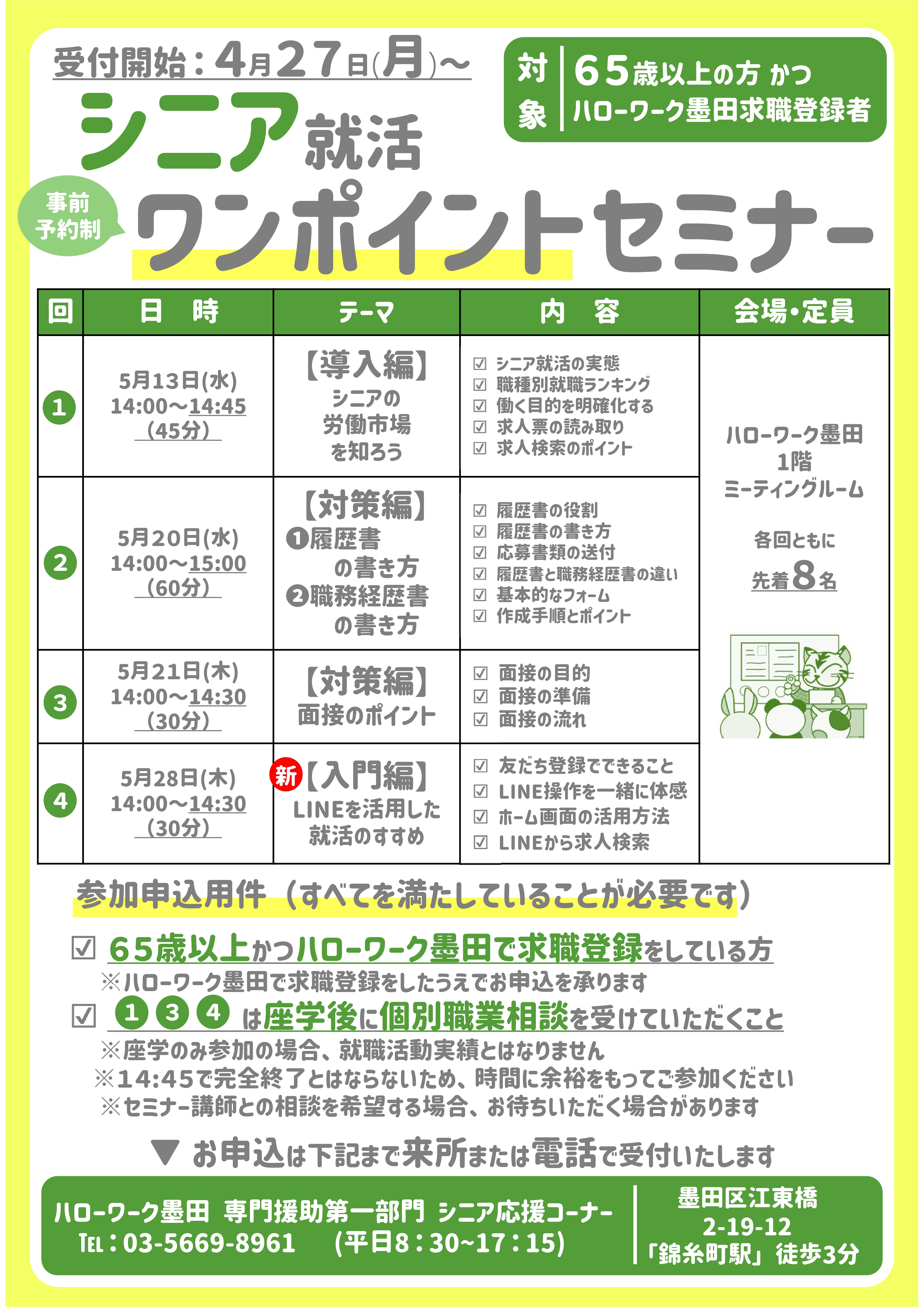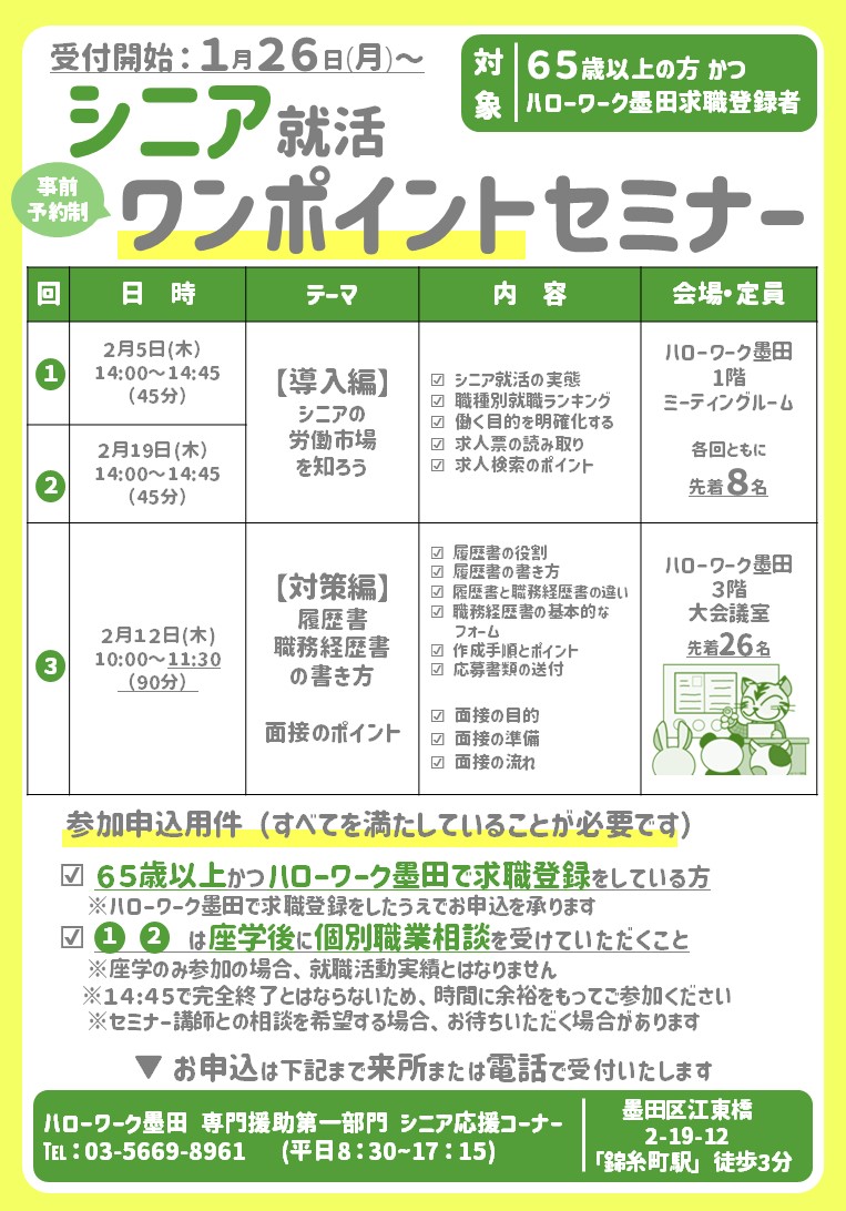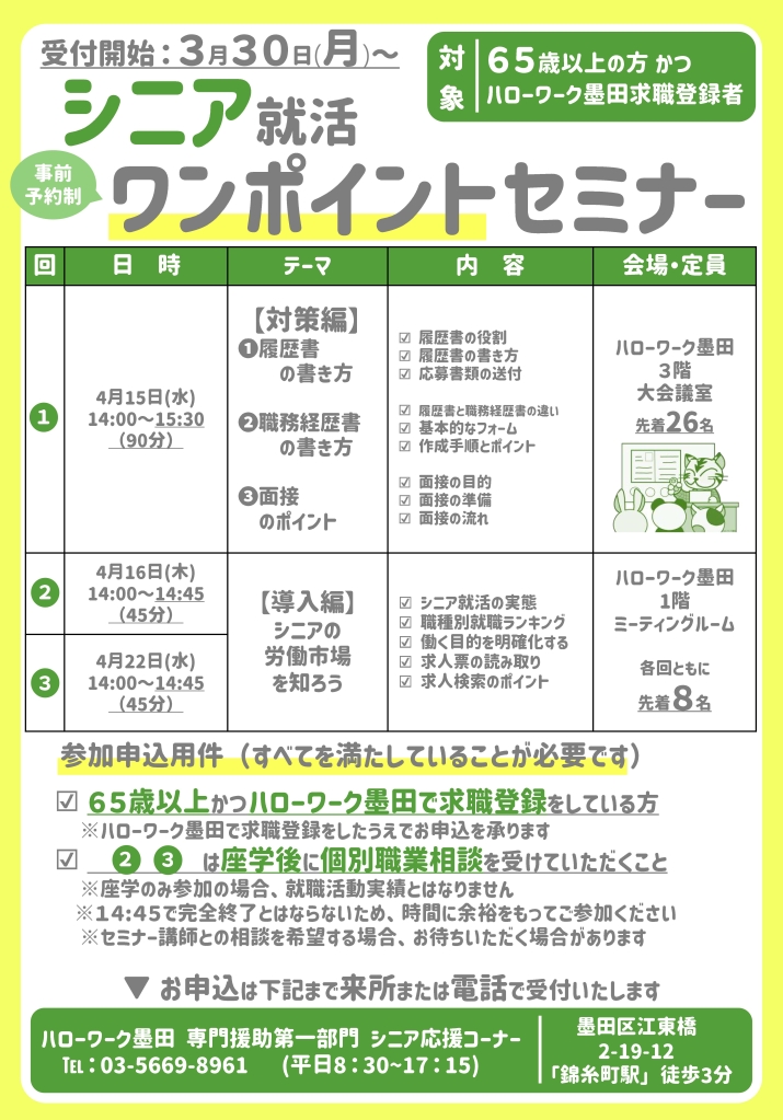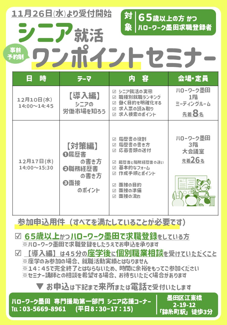 このページではシニア(65歳以上)の方を対象としたセミナー情報を掲載いたします。 画像をクリックするとセミナー内容をご確認いただけます。