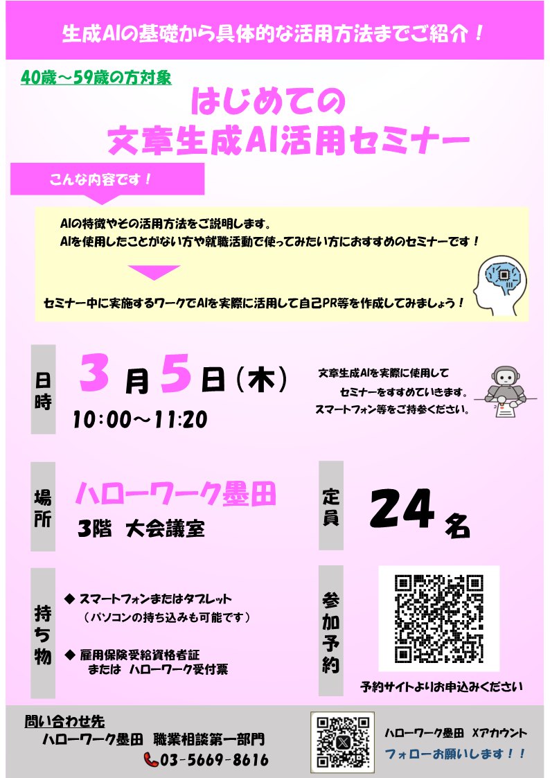 ハローワーク墨田において、文章生成AI活用セミナーを開催します!