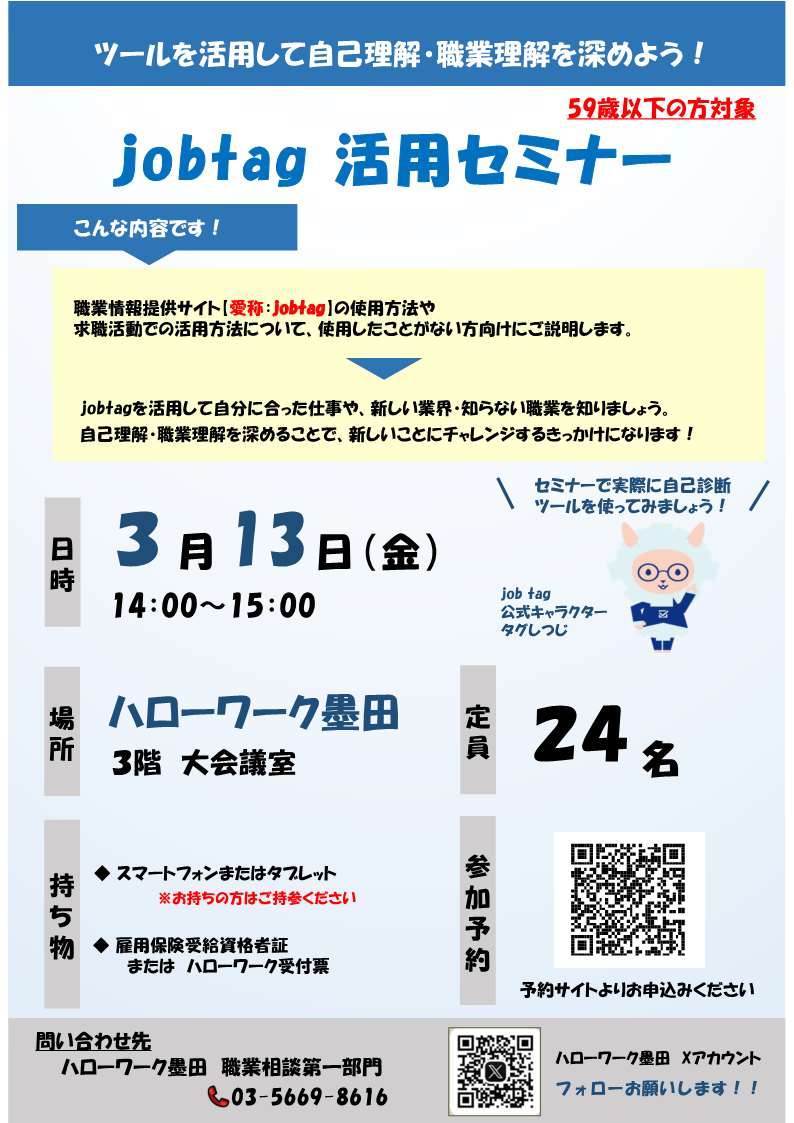 ハローワーク墨田において、job tag活用セミナーを開催します!