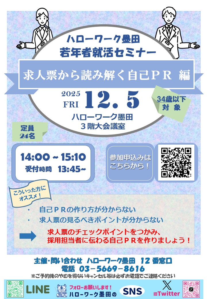 ハローワーク墨田において、若年者就活セミナーを開催します!