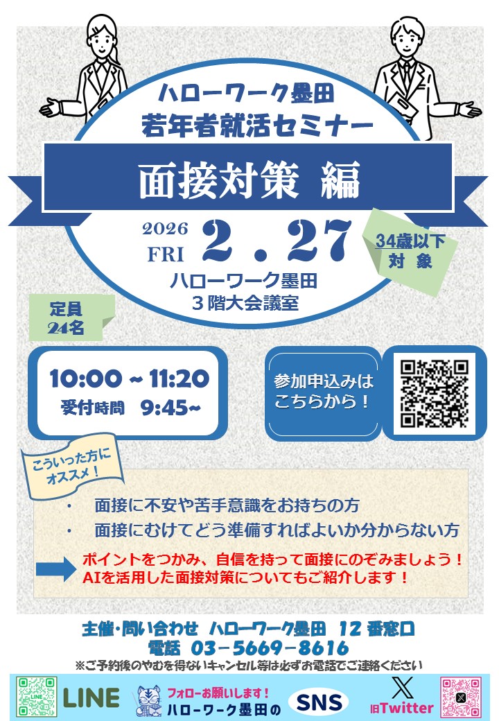 ハローワーク墨田において、若年者就活セミナーを開催します!