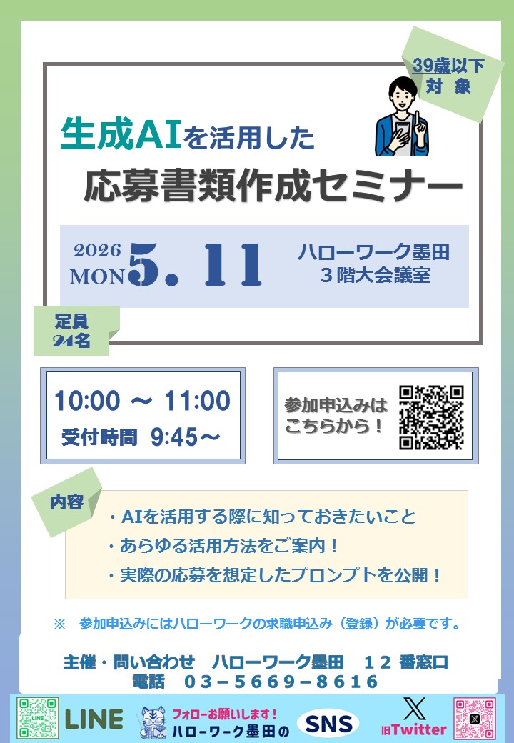 ハローワーク墨田において、生成AI活用セミナーを開催します!