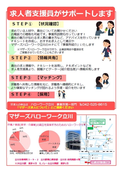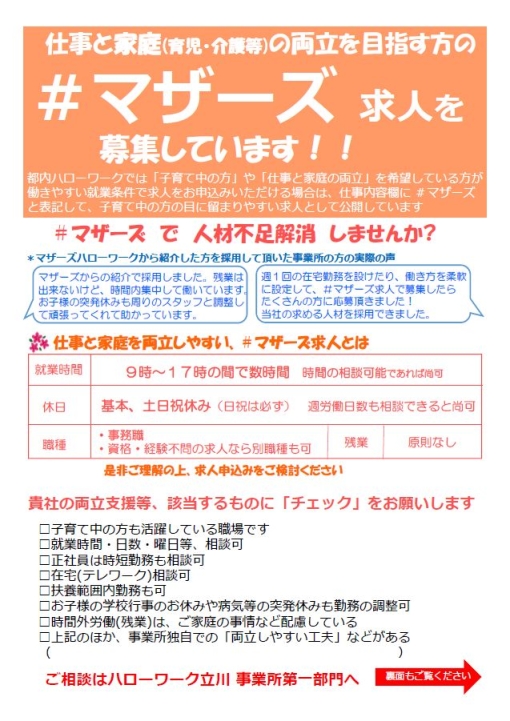 などがご利用になられています。 ⇒ マザーズハローワーク立川HP