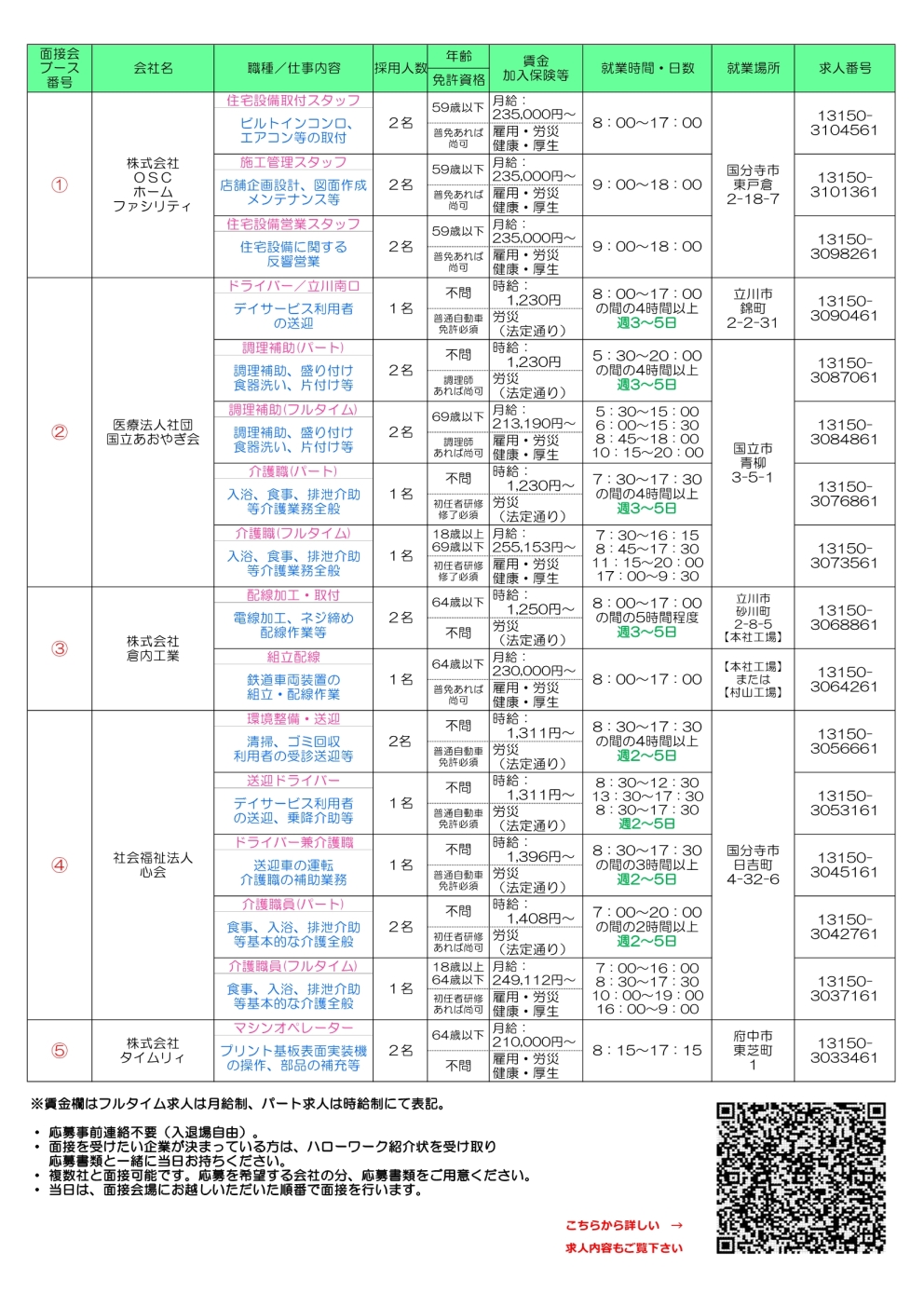 ※面接を受けたい企業が決まっている方は、ハローワーク紹介状を受け取り、応募書類と一緒に当日お持ちください