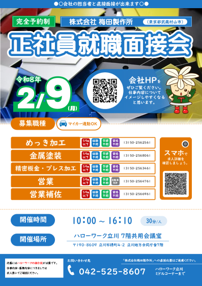 正社員就職面接会in立川(2月9日開催)のお知らせ