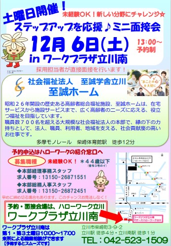 ワークプラザ 立川南『ミニ面接会』のお知らせ