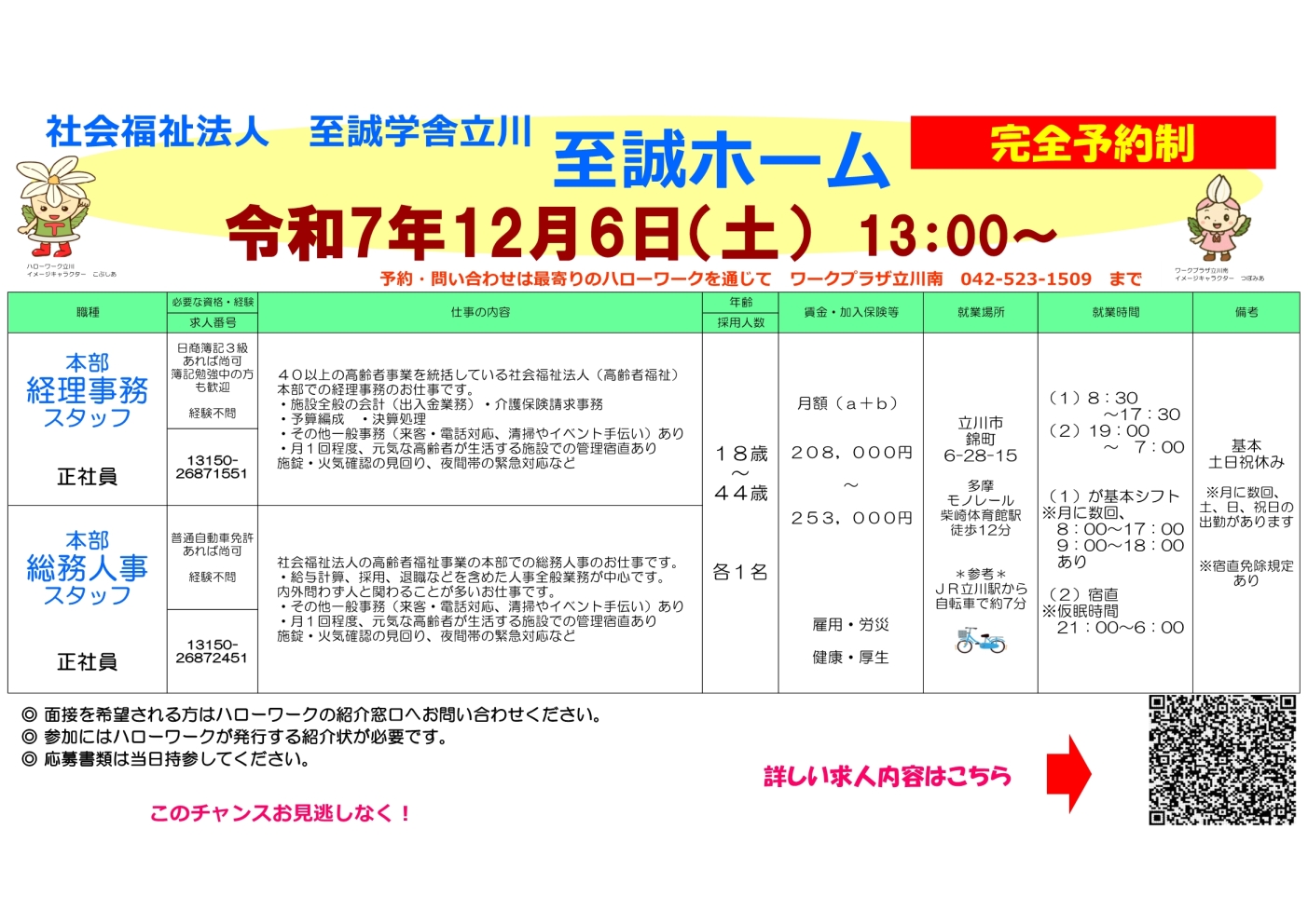 ワークプラザ立川南 TEL:042-523-1509