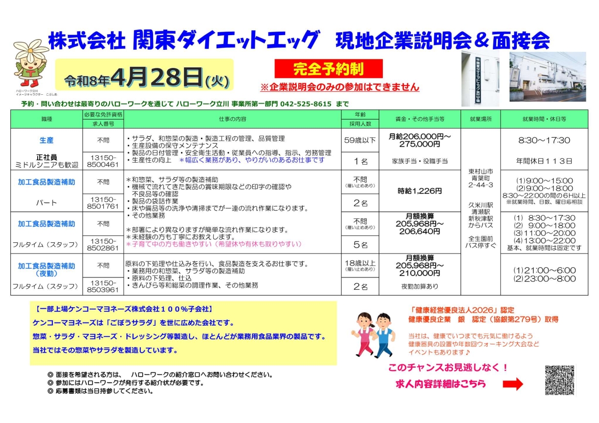 - 株式会社 関東ダイエットエッグ 東村山工場(東村山市青葉町2-44-3)