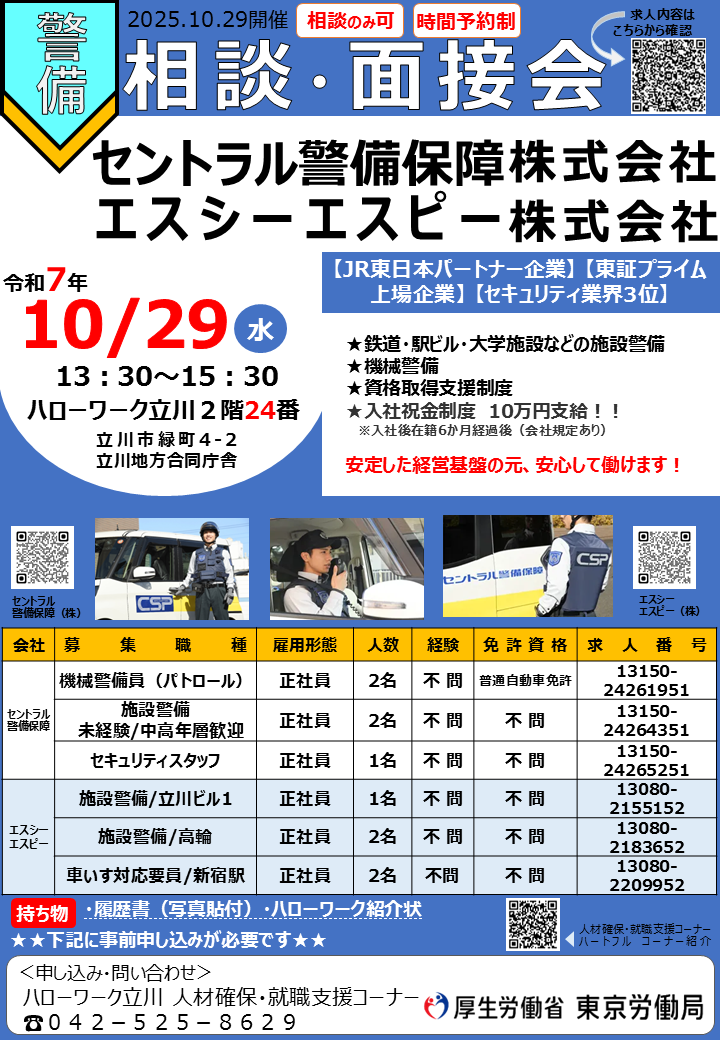 警備の相談・面接会(10月29日(水)開催)のお知らせ
