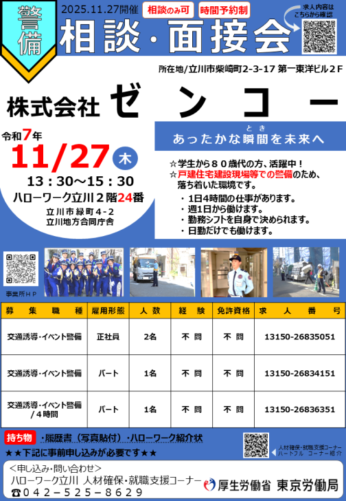 警備の相談・面接会(11月27日(木)開催)のお知らせ
