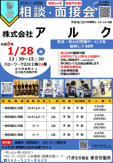 警備の相談・面接会(1月28日(水)開催)のお知らせ