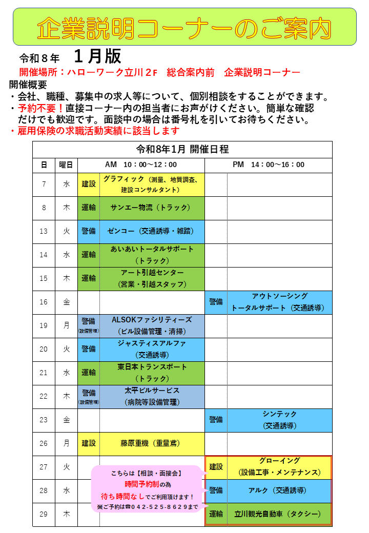 企業説明コーナー(1月)のご案内