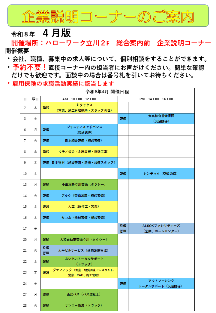 - ハローワーク立川 2階 総合案内前 企業説明コーナー