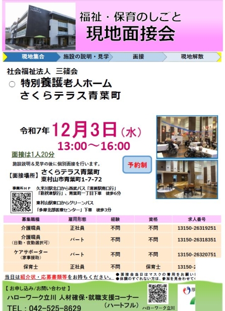 ◆社会福祉法人 三條会の 特別養護老人ホームさくらテラス青葉町 もしくは 青葉さくら保育園 でのお仕事です