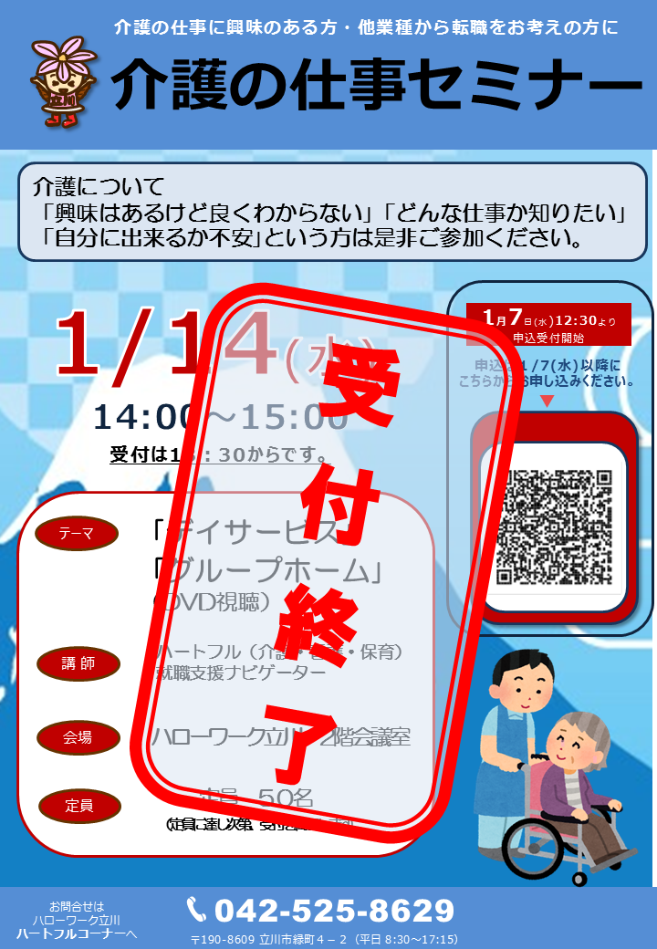 ・介護の仕事セミナー(今回と同じテーマ)を過去に受講した方は、今回受講できません