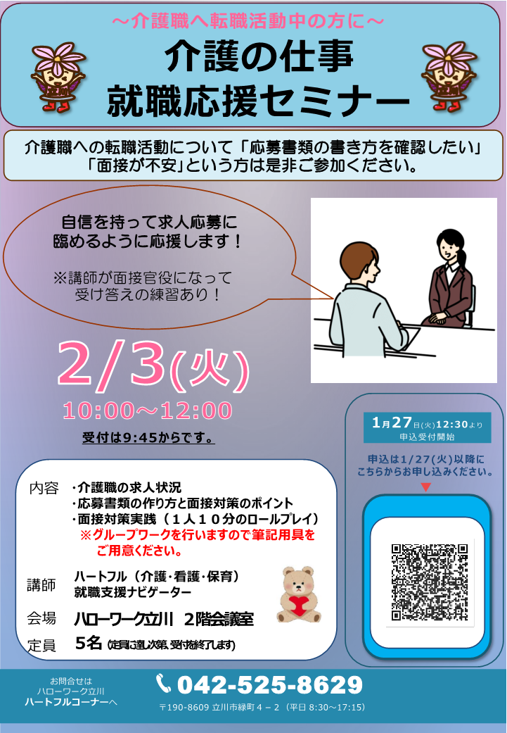職業相談第二部門 ハートフル(23番窓口)TEL:042-525-8629