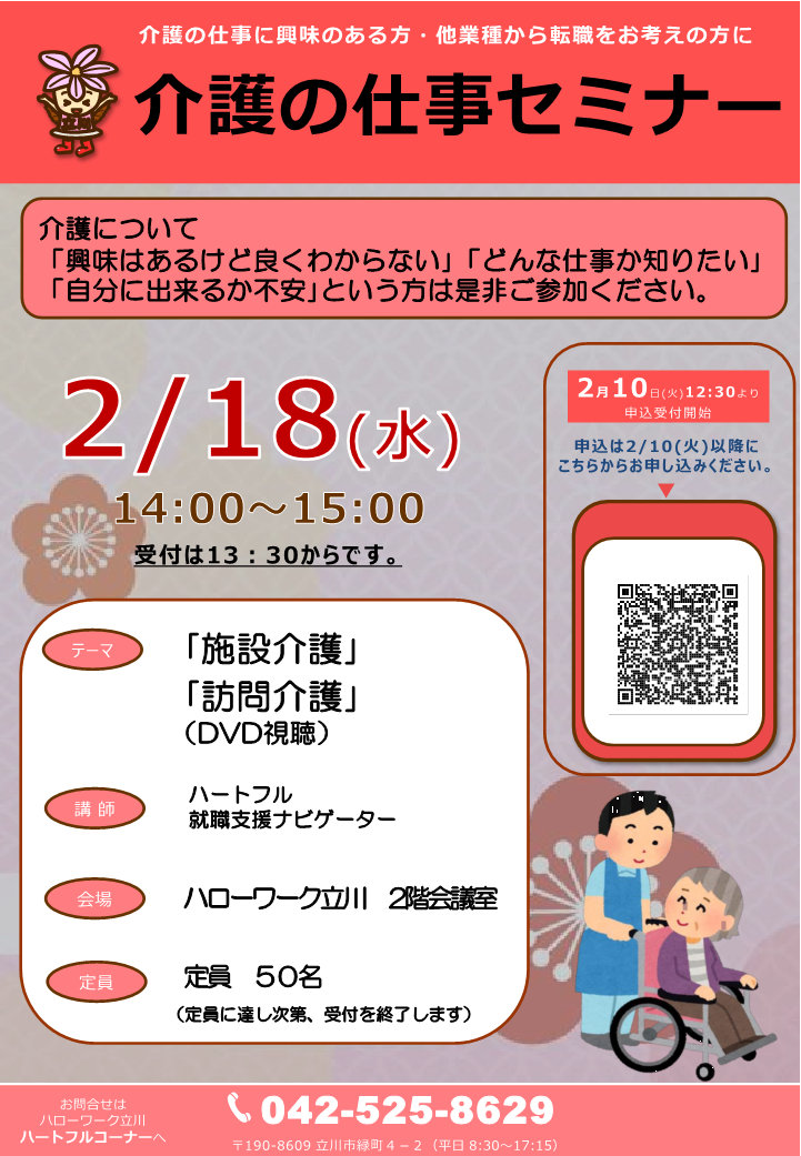 ・介護の仕事セミナー(今回と同じテーマ)を過去に受講した方は、今回受講できません