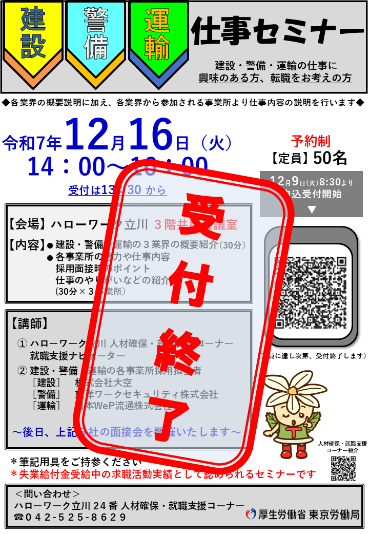 『建設・警備・運輸の仕事セミナー』のお知らせ