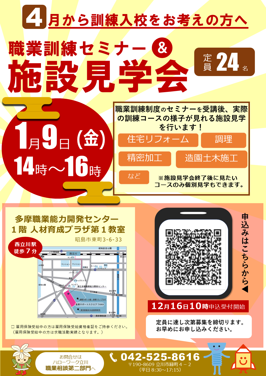 『職業訓練セミナー』『施設見学会』(1月9日開催)のお知らせ