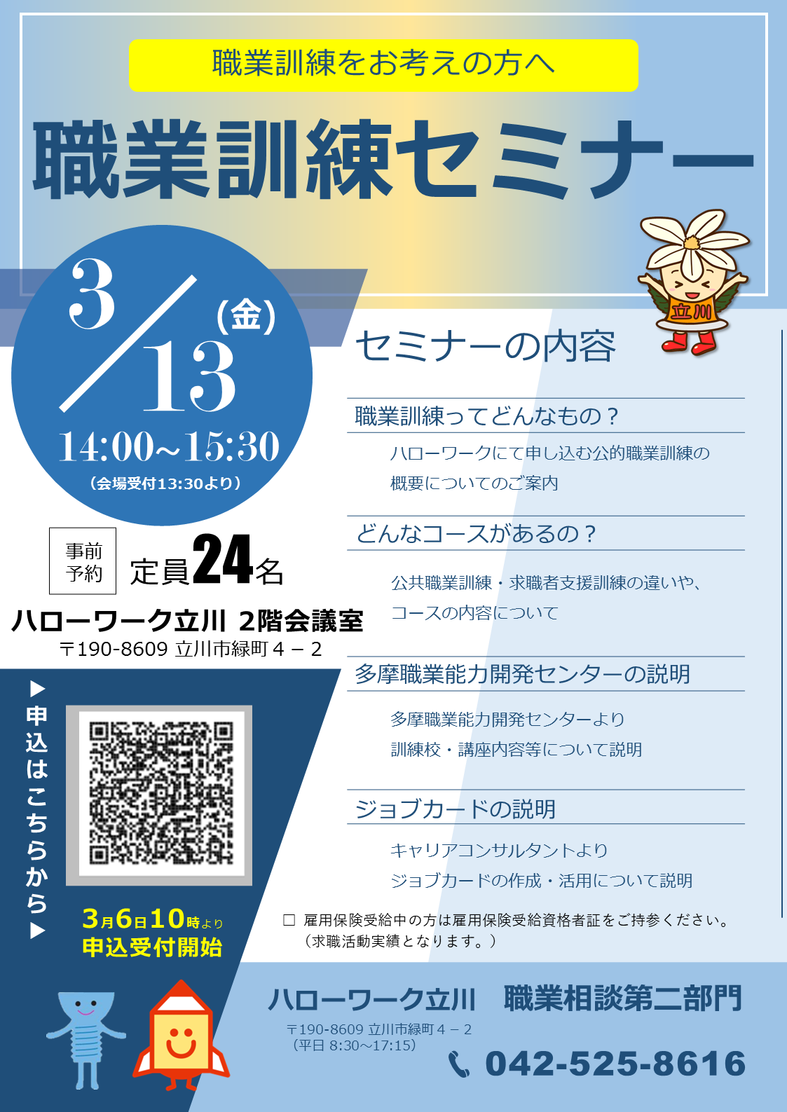 『職業訓練セミナー』(3月13日開催)のお知らせ