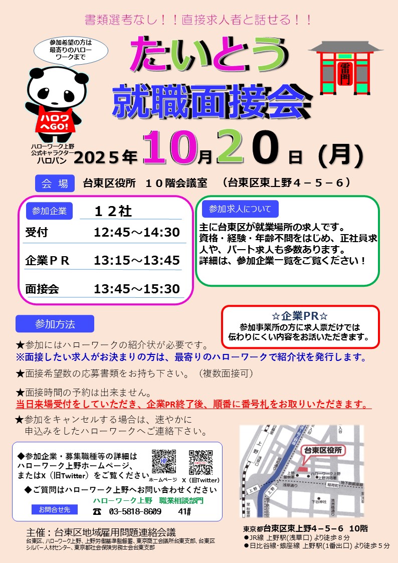・主に台東区が就業場所の求人です。資格・経験・年齢不問をはじめ、正社員求人や、パート求人も多数あります。詳細は、参加企業一覧をご覧ください!