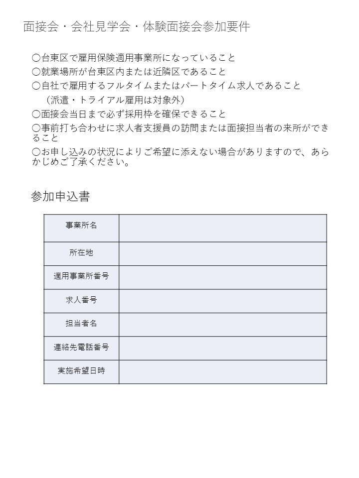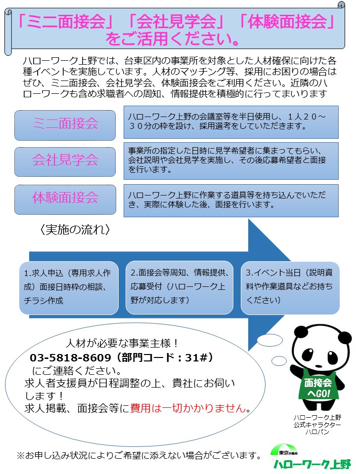 ●ハローワーク上野では、台東区内の事業所を対象とした人材確保に向けた各種イベントを実施しています。