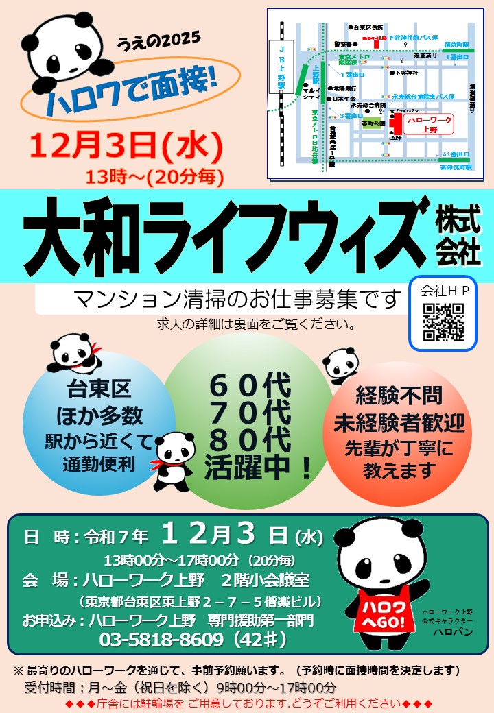 - 最寄りのハローワークで事前予約をして下さい※予約時に、面接時間をお知らせします