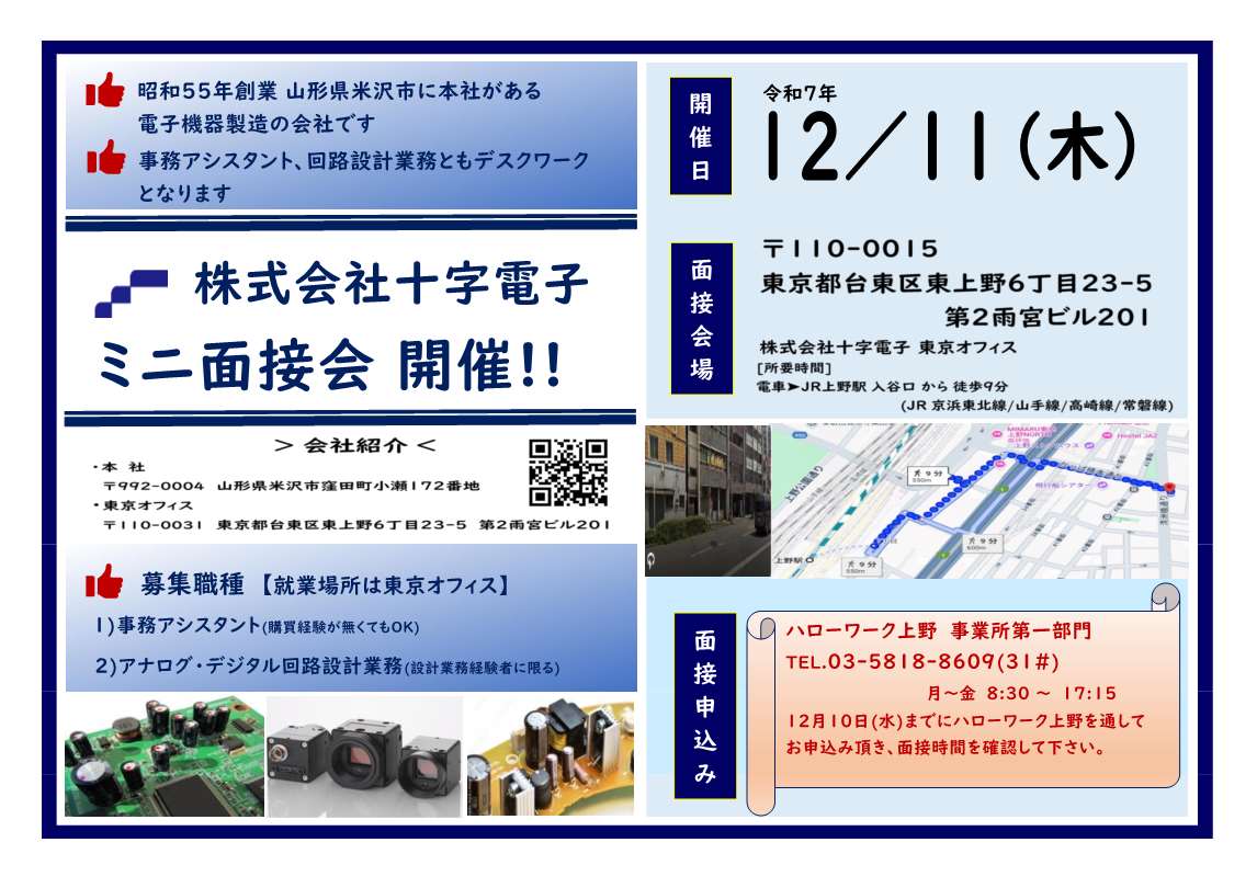 12/10(水)までにハローワーク上野を通じて、お申込み頂き、面接時間を確認して下さい。