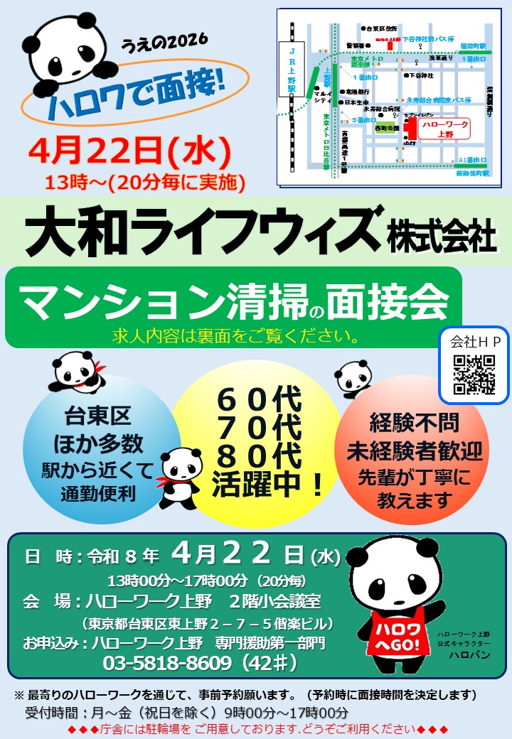 - 最寄りのハローワークで事前予約をして下さい※予約時に、面接時間をお知らせします