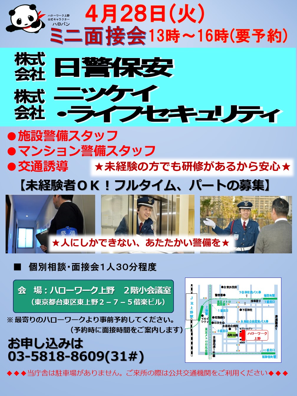 - 最寄りのハローワークで事前予約をして下さい※予約時に、面接時間をお知らせします