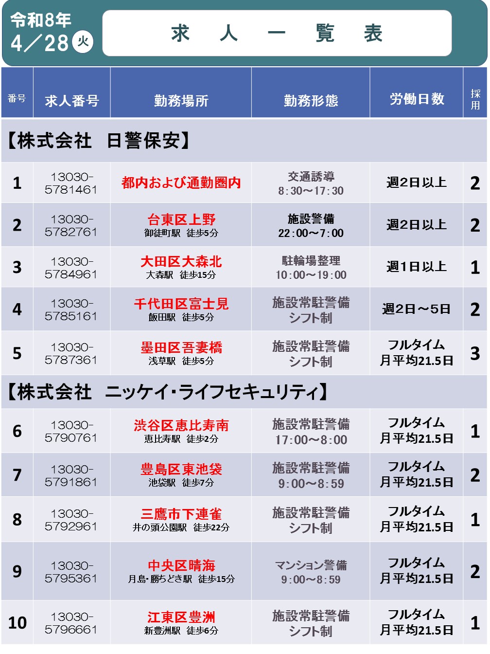 各求人に応募したい場合は、お近くのハローワークの職業相談窓口までご連絡ください。