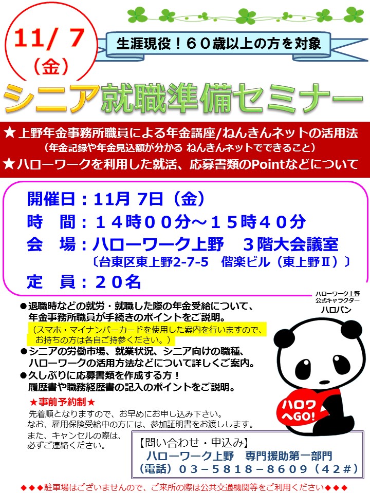 - シニア層(60歳以上の方)の就職活動に特化したセミナーです