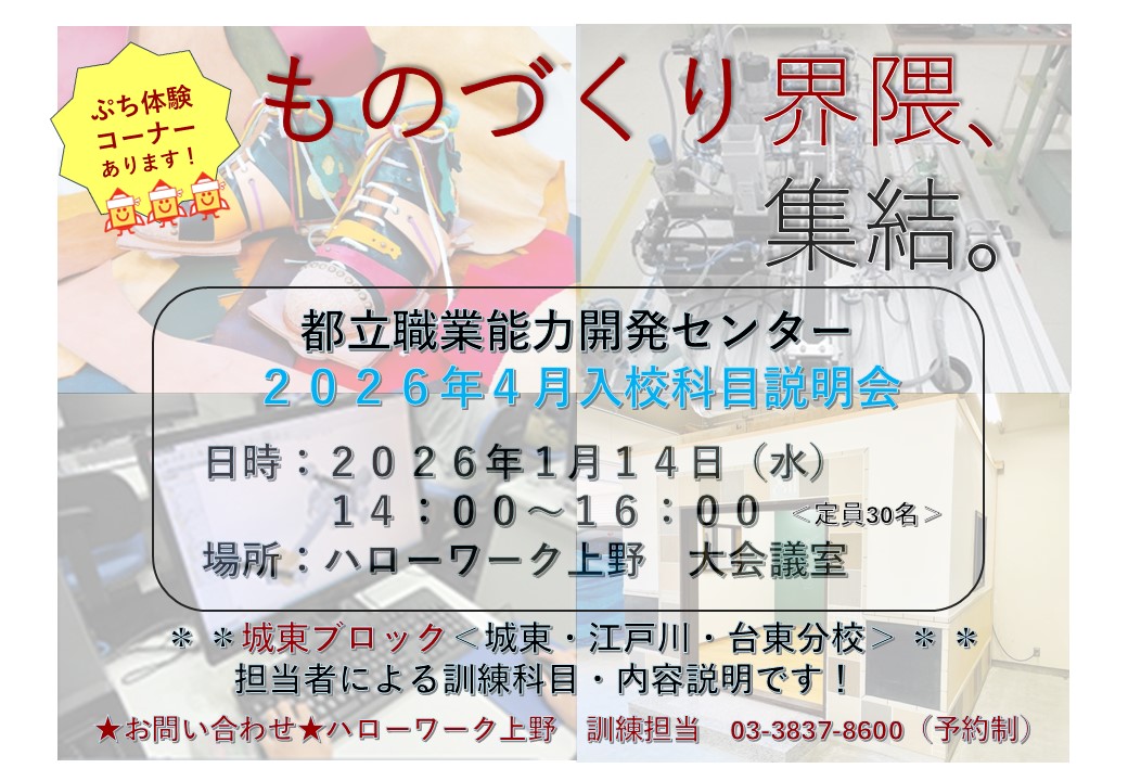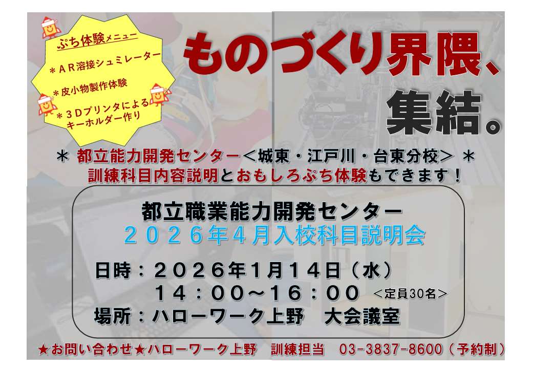 都立職業能力開発センター2026入校科目説明会を開催いたします。