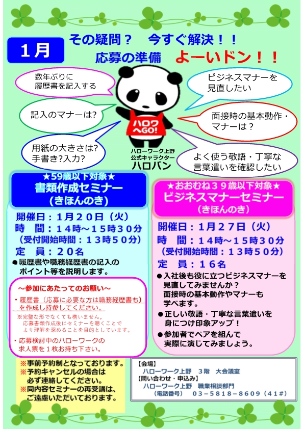 ※1月開催セミナーのご案内(おおむね39歳以下対象)